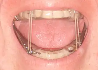 - Férula interdentaria: tablilla para la fractura del maxilar inferior, mantenida en posición por alambres sujetos en los dientes.