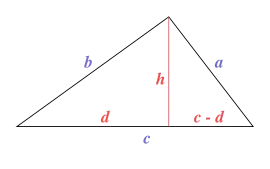 usando b 2 − d 2 = h 2 por el teorema de Pitágoras; en cuanto a la parte derecha de la fórmula, puede expresarse como