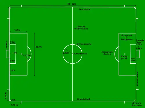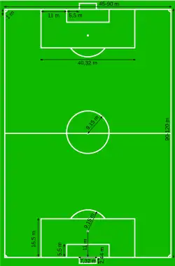Cancha de césped rectangular de 90 × 45 m o hasta de 120 × 90 m![]() | |