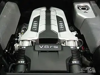 Gracias a la gran precisión de la inyección, a la finísima pulverización del combustible y a la refrigeración interna cuando se difumina el combustible en la cámara de combustión, el motor FSI permite una compresión más elevada que los motores con inyección convencional en el colector, lo que proporciona más efectividad termodinámica.