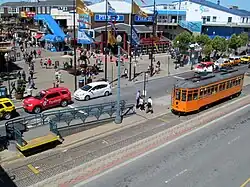 - ↑ a b c Epstein, Edward (2 de marzo de 2000). «New way to the wharf; Merchants hope F–Market line will draw locals to tourist attractions». The San Francisco Chronicle. p. A20. Archivado desde el original el 25 de febrero de 2019. Consultado el 17 de agosto de 2019.