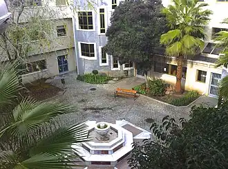 La Facultad está construida sobre un gran patio central de forma casi circular. En la última planta del edificio se encuentran todos los servicios propios del centro: Las aulas docentes, servicios administrativos, despachos departamentales y la delegación de estudiantes.