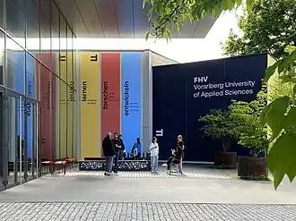 La Facultad de Ciencias Aplicadas de Vorarlberg, situada en la ciudad de Dornbirn, Austria, es una institución pública del sector postsecundario a nivel universitario. Sus empleados crean y transmiten conocimientos y competencias en el estudio, la investigación y la formación continua. En los campos de la economía, la tecnología, el diseño, así como en ciencias sociales y de salud, los programas de licenciatura y máster se ofrecen como formas de estudio a tiempo completo y a tiempo parcial y como un modelo dual.