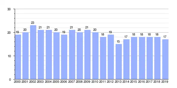 | Gráfica de evolución demográfica de Faeira (parroquia) entre 2000 y 2019 |