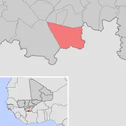 Se encuentra ubicada al sur del país, junto a la frontera con Burkina Faso y Costa de Marfil y al sureste de la capital nacional, Bamako.