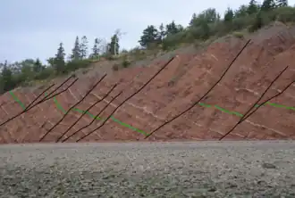 - ↑ Williams, G.D.; Powell C.E.; Cooper M.A. (2002). «Geometry and kinematics of inversion tectonics». En Holdsworth R.E. & Tuner J.P., ed. Extensional Tectonics: Regional-scale processes. Geological Society. p. 344. ISBN 978-1-86239-114-7. Consultado el 9 de noviembre de 2009.