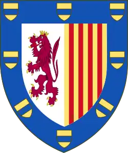 • Bordura general de azur, con ocho escudetes de oro, barrados de azur.