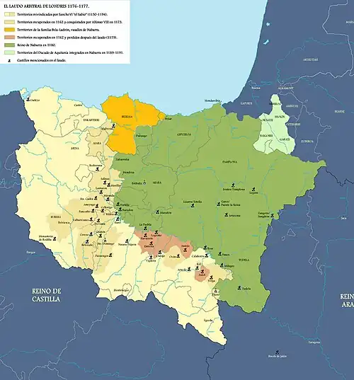 - ↑ También se puede pensar que para realizar la expansión de Navarra suprimieron el único obstáculo que podía interponerse para impedirla, es decir, el infante García de Castilla, quien por su matrimonio inminente con la princesa Sancha de León tenía fundadas esperanzas de alcanzar el título de rey de Castilla.