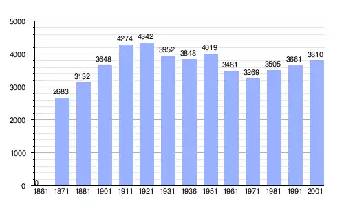 | Gráfica de evolución demográfica de Fara Vicentino entre 1861 y 2001 |