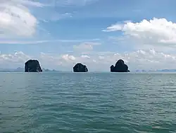 Ko Tapu (apodada la "Isla de James Bond" debido a su aparición en la película The Man with the Golden Gun) está en la bahía de Phang Nga en Tailandia.
