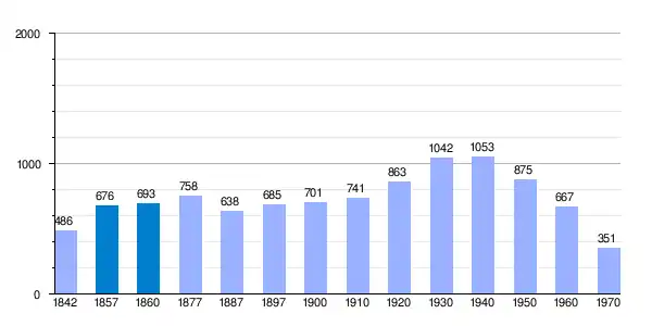 | Gráfica de evolución demográfica de Farasdués[6] entre 1842 y 1970 |