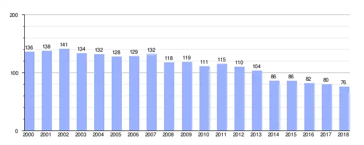 | Gráfica de evolución demográfica de Farasdués entre 2000 y 2018 |