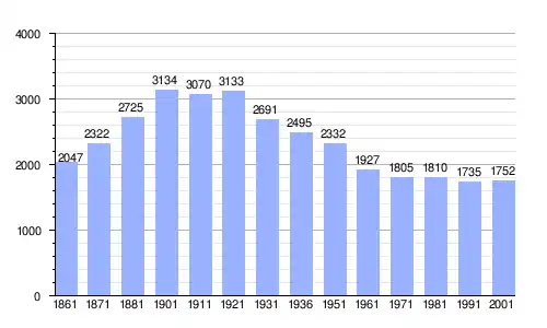 | Gráfica de evolución demográfica de Farigliano entre 1861 y 2001 |