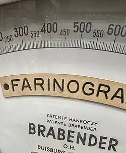 Un farinógrafo es una máquina que mide las propiedades físicas de la harina, como su consistencia o capacidad de absorber agua. Aunque fue comercializado por primera vez en 1928 por Carl Wilhelm Brabender en Alemania,[1] los principios científicos en los que se basa fueron desarrollados previamente, en 1912, por el químico agrícola húngaro Jenő Hankóczy.