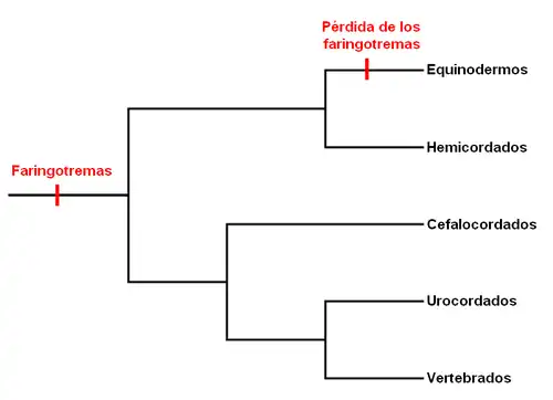 La presencia de faringotremas en hemicordados llevó a debates sobre si éstas eran homólogas a las hendiduras encontradas en los cordados, o eran el resultado de evolución convergente.[8] Con el posicionamiento de los hemicordados y equinodermos como grupos hermanos de los cordados han surgido hipótesis que sugieren que los faringotremasse encontraban presentes sus antepasados deuteróstomos.[9] Extrañamene algunos taxones extintos de equinodermos no poseen estructuras faríngeas, aunque la evidencia fósil revela que los antepasados de os equinodermos poseían estructuras similares a las agallas.[10] En análisis genético y comparativo del desarrollo de estas estructuras faríngeas entre los hemicordados y urocordados han revelado datos importantes sobre la evolución del plan corporal del deuteróstomo.[11] La biología molecular comparativa ha revelado que los genes PAX1/9 (que codifican los factores de trascripción) son expresados en patrones similares entre hemicordados y urocordados; En los vertebrados Pax 1 y Pax 9 son expresados en las bolsas faríngeas y son importantes en el desarrollo del timo.[12] De manera interesante, la aplicación de un exceso de ácido retinoico en vertebrados resulta en anormalidades faríngeas, y en el cefalocordado Branchiostoma lanceolatum resulta en la ausencia de faringotremas, sugiriendo que el ácido retinoico actúa con el mismo mecanismoen ambos.[13] Estos estudios indican que los faringotremas encontrados en hemicordados y cordados son homólogos desde un punto de vista molecular.