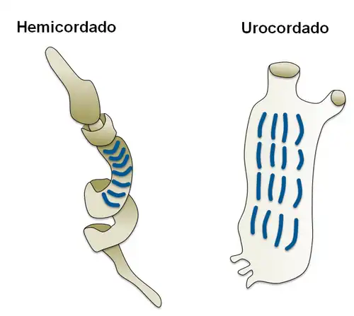 - ↑ Winchell CJ, Sullivan J, Cameron CB, Swalla BJ, Mallatt J (2002). «Evaluating hypotheses of deuterostome phylogeny and chordate evolution with new LSU and SSU ribosomal DNA data». Mol Biol Evol 19 (5): 762-776. PMID 11961109.