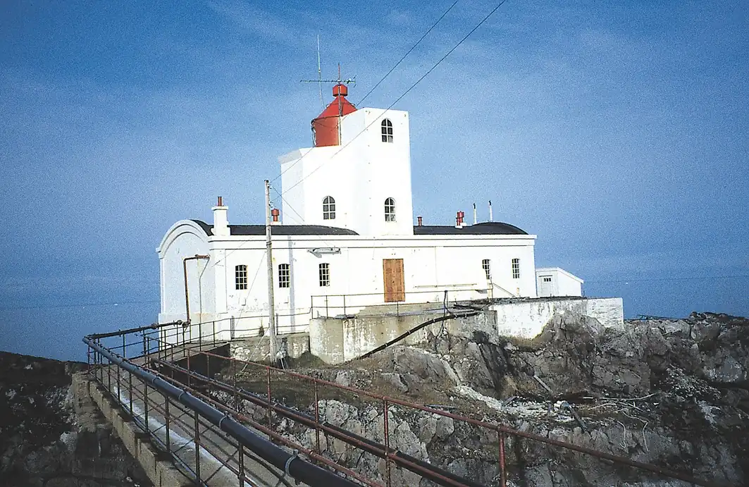 La torre de hormigón, blanca y cuadrada alcanza los 12 m de altura. Tiene una parte superior roja donde se encuentra la luz. La luz de 1,232,000 candelas emite dos destellos blancos cada 20 segundos a una altitud de 39 m sobre el nivel del mar. La luz puede verse hasta 17,6 millas náuticas. La luz se enciende del 12 de agosto al 24 de abril de cada año, pero se apaga durante el verano debido al sol de medianoche. Hubo una sirena de niebla activa operando en el sitio desde 1922 hasta 1989. El sitio sólo es accesible en barco. El faro fue automatizado en 2005.[1][3]