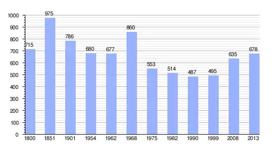 Los datos demográficos contemplados en este gráfico de la comuna de Faveraye-Mâchelles[4] se han cogido de 1800 a 1999 de la página francesa EHESS/Cassini, y los demás datos de la página del INSEE.[5]