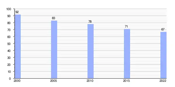 | Gráfica de evolución demográfica de Feás entre 2000 y 2022 |