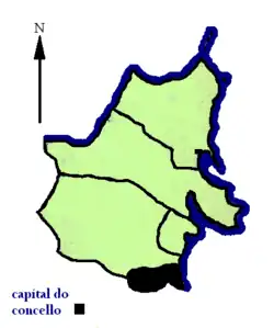 - ↑ Miralbes Bedera, Rosario; de Torres Luna, María Pilar; Rodríguez Martínez-Conde, Rafael (1979). «Ortigueira». Mapa de límites de las parroquias de Galicia. Santiago de Compostela: Imprenta Paredes. p. 19. ISBN 8460014142.