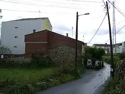 - Inexistencia de remates y acabados exteriores: Las edificaciones carecen de revestimiento, enlucido o enfoscado, quedando el ladrillo hueco o el bloque de hormigón sin pigmento o tratado a la vista. El periodista y financiero Marcelino Fernández Mallo identificó en abril de 2006, en el tramo de la carretera Ribadeo a Baamonde, hasta 206 construcciones de bloque de hormigón y 152 de ladrillo en las condiciones descritas anteriormente.[6] En un análisis del año 2005 realizado en el tramo Meira-Villalba calculó que el 50% de las construcciones eran de ladrillo hueco sin recubrir.[7]