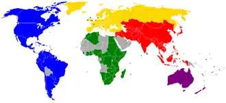 La BWF cuenta en 2016 con la afiliación de 183 federaciones nacionales[2] repartidas en cinco organismos continentales:
