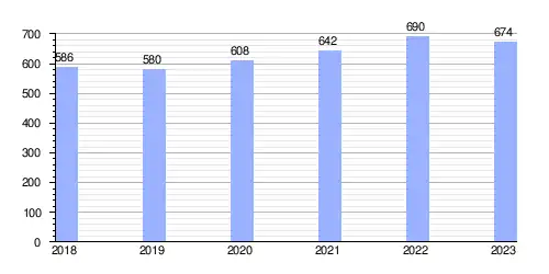 | Gráfica de evolución demográfica de Feketeerdő entre 2018 y 2023 |
