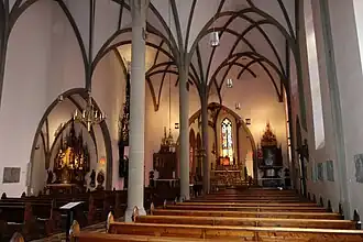 - La Frauenkirche (Iglesia de la Anunciación y San Sebastián y San Antonio) está situada al sureste de la Puerta de Chur. Originalmente data de 1473, pero fue rediseñada en gran parte en 1672-1678; desde 1990, la iglesia parroquial ortodoxa serbia está equipada con iconostasio.
