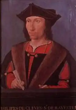 Aristócrata cuya franqueza de pensamiento y firmeza de carácter le causaron graves problemas, Felipe de Cléveris (conocido en su juventud como Felipe de Ravenstein) fue un guerrero ambicioso al servicio de los duques Valois de Borgoña. Fiel a la dinastía de Borgoña, era partidario de la autonomía de las ciudades frente al deseo centralizador del emperador Maximiliano de Habsburgo (1459-1519), una vez que había muerto María de Borgoña.