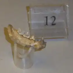 Fragmentos de una mandíbula fosilizada de f. lunensis, en el Museo de Paleontología de Firenze. | ||