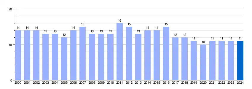 | Gráfica de evolución demográfica de Felmín[10] entre 2000 y 2024 |