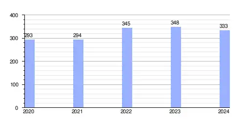 | Gráfica de evolución demográfica de Felsőregmec entre 2020 y 2024 |