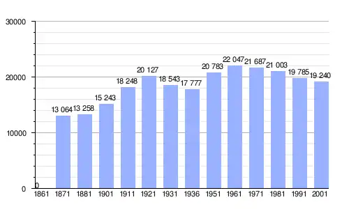 | Gráfica de evolución demográfica de Feltre entre 1861 y 2001 |