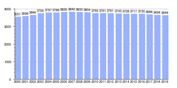 | Gráfica de evolución demográfica de Fene (localidad) entre 2000 y 2019 |