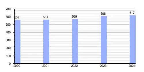 Hasta 2024 la población era de 617 habitantes,[2] con una densidad de población de 106,56 hab/km².[2]