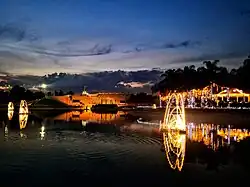 Este es el recinto en que lunes, martes y miércoles se lleva a cabo en punto de las 8:00 p. m. el Show Piromusical, en el que se une música y pirotecnia en perfecta armonía. Jueves, viernes, sábado y domingo este lugar es sede de un espectáculo multimedia de talla internacional, en el que varias historias son reflejadas por medio de imágenes en las fuentes del lago, llamadas "pantallas de agua" acompañado de Show Piromusical, todo ello totalmente gratis.