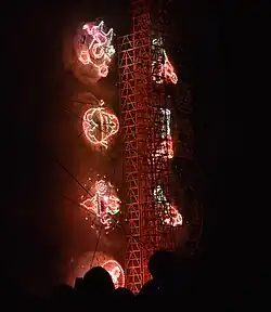 El primero de los eventos es un concurso de castillos, que son estructuras hechas de madera, caña y papel con fuegos artificiales sujetos a estas. El objetivo de estas estructuras es crear figuras con los fuegos pirotécnicos y movimientos de la estructura. Los castillos hechos para este evento miden entre 25 y 30 metros y requieren cerca de 15 días para ser construidos. Cuando los prenden, su exhibición tarda entre 20 y 30 minutos.[3][5]