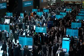 Stand de IBM en CeBIT 2010 en el predio ferial de Hanover, el mayor predio ferial del mundo con un área de muestras de 450.000 m², en la ciudad de Hanover, Alemania. Durante el boom de las dot com se registraron 500,000 visitantes a la feria CeBIT.[14]