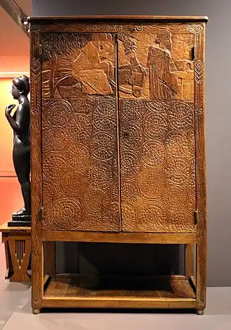- La Huida a Egipto, entre 1895 y 1900, mueble de roble y abeto, 170,6 × 99,8 × 39 , decorado con dos paneles : El descanso en la huida a Egipto y La Anunciación .