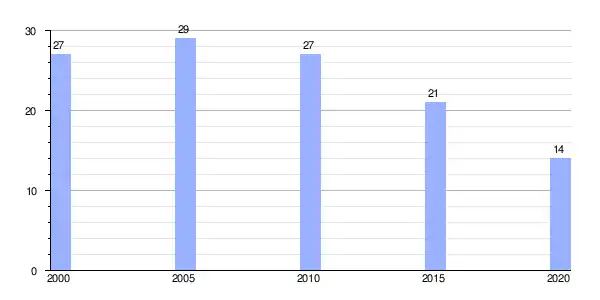 | Gráfica de evolución demográfica de Ferreirúa de Baixo entre 2000 y 2020 |