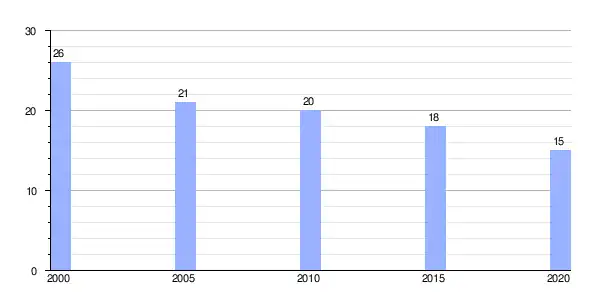 | Gráfica de evolución demográfica de Ferreiros (parroquia) entre 2000 y 2020 |