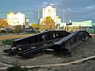 Puente: se emplaza un puente ferroviario en el predio del muelle YPF, construido en ladrillos aún conserva vías.