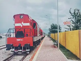 Tren en la estación de Kashar en 2015, cuando esta funcionaba como conexión con Tirana. | |||||||||||||||||||||||||||||||||||||||||||||||||||||||||||||||||||||||||||||||||||||||
