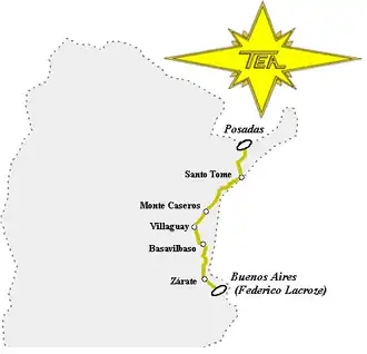 - ↑ Por la salida de TBA, suspenden los trenes a Misiones y Uruguay