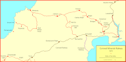 Durante mucho tiempo se había deseado disponer de un ferrocarril que conectara Cornualles con Londres y las Midlands industriales y el norte de Inglaterra, pero la difícil topografía de la zona dificultó la obtención de la financiación necesaria. Después de una larga lucha, el Ferrocarril de Cornualles se abrió en 1859, conectando Truro y Plymouth, y en asociación con el Great Western Railway (GWR) y sus aliados, formó una ruta con vías de gran ancho desde Truro a Londres y Gloucester. Se habilitó una línea de conexión desde Penzance, y el Ferrocarril de Cornualles se extendió más tarde hasta Falmouth.[4]