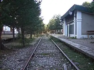 Todos los trabajos de prolongación fueron paralizados en 1959, en el contexto de recortes de gasto público que impuso el Plan de Estabilización.[25] En aquel momento, solo faltaban por construir unos 35 kilómetros del trazado y realizar el tendido de vías en todo el tramo. A pesar de las obras que ya se habían realizado en la zona, y de que incluso algunas estaciones de este tramo ya habían sido construidas, la continuación del ferrocarril nunca llegó a concluirse y quedó abandonada.