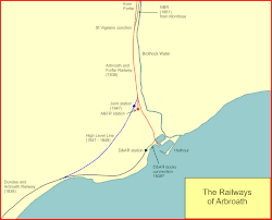 - Ferrocarril del Norte Británico, Arbroath y Montrose en St Vigean's Junction al noreste de Arbroath
