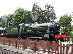 | N.º 7820 "Dinmore Manor" | GWR 4-6-0 7800 "Manor" Class | Returned to service in 2013 following its 10-year overhaul. The loco ran with the tender of "Dukedog" Class N.º 9017 Earl of Berkeley until October 2015, when it was changed for 2884 Class N.º 3850's tender after the loco came out of service for overhaul. It now runs with Collett 3500 gallon tender. Lined out in time for the 2018 operating season. Built in 1950. Boiler ticket expires in 2023. | BR Lined Black, Early Emblem |