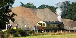 Autocoche No.178 en la estación de Norton Fitzwarren propulsado por una máquina de la Clase 4575. Detrás está el vertedero de balasto de la WSRA, donde se recicla para ser usado en el ferrocarril o revenderlo
