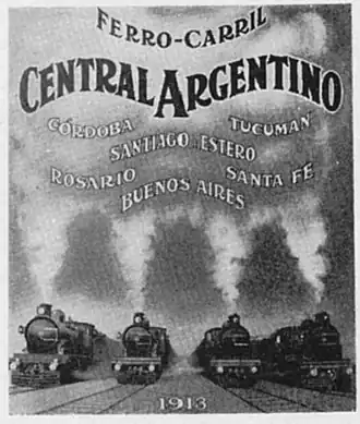 En 1854 el gobierno de la provincia de Buenos Aires integró una sociedad mixta junto con empresarios locales para la construcción del primer ferrocarril argentino (Ferrocarril Oeste), aportando a tal fin dos millones de pesos, lo cual constituía una tercera parte del capital total de la empresa.[1] Dicho ferrocarril, construido en trocha ancha (1,676 m), se inauguró en 1857 con una extensión original de 10 kilómetros (Estación del Parque-La Floresta), siendo gestionado de forma privada hasta 1862, cuando los problemas financieros hicieron que la empresa terminara pasando totalmente a manos del gobierno de la provincia de Buenos Aires que comenzó a administralo a partir del 1 de enero de 1863 bajo el nombre de "Ferrocarril de la Provincia".[2][1] En 1867, durante la presidencia del general Bartolomé Mitre, el Estado Nacional ordenó el estudio de un ferrocarril que uniese Villa María con la ciudad de Río Cuarto, también construido en trocha ancha, el cual sería inaugurado en 1873 y más tarde sería extendido hacia las provincias de Mendoza y San Juan, por lo que recibió el nombre de Ferrocarril Andino.[2] En 1876, bajo el gobierno de Nicolás Avellaneda, se empredería la construcción de otro ferrocarril, esta vez construido en trocha angosta (1,000 m), el cual sería llamado Central Norte y que estaría destinado a unir las ciudades de Córdoba y Tucumán, para luego ser extendido a las provincias de Salta y Jujuy. Sin embargo, ninguno de estos [cita requerida]ferrocarriles llegaba hasta los importantes puertos del litoral, sino que ambos funcionaban como ramales abastecedores del Ferrocarril Central Argentino, empresa británica cuya línea construida en trocha ancha unía las ciudades de Rosario y Córdoba.[2]